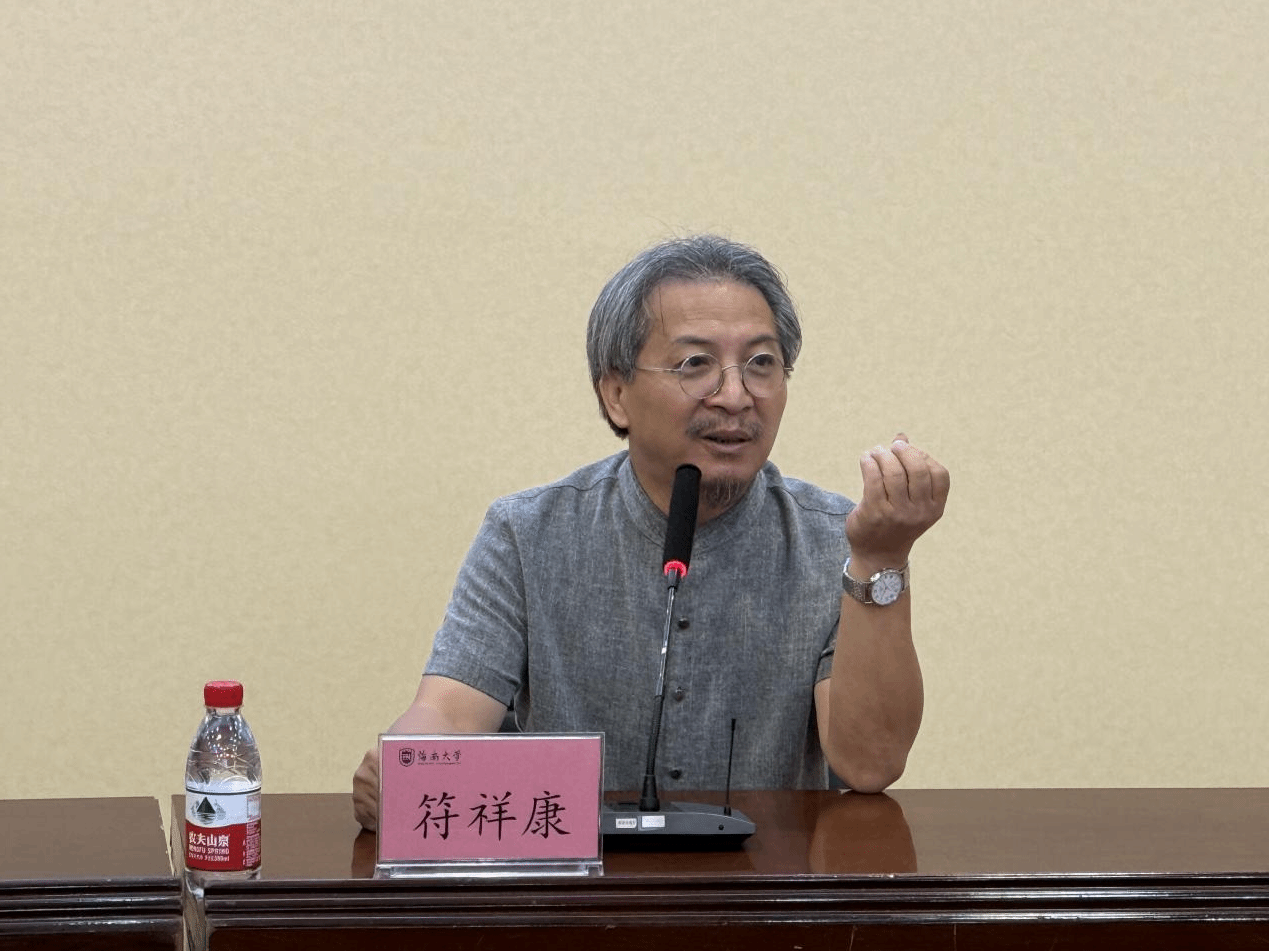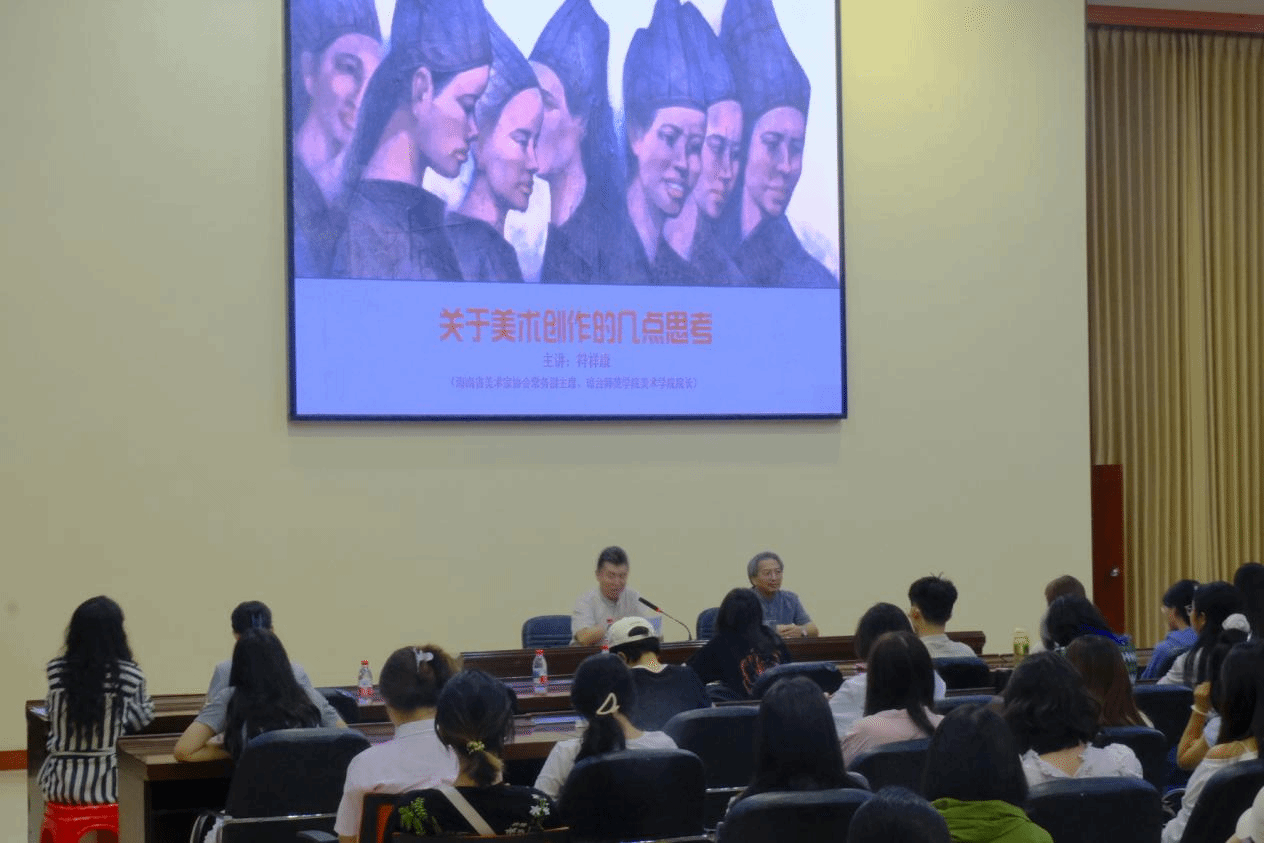 院长、中国美术家协会会员、海南省美术家协会常务副主席符祥康教授以“关于美术创作的几点思考”为题与到场师生展开了深入交流。本次讲座由美术系责任教授包格日乐吐主持。
