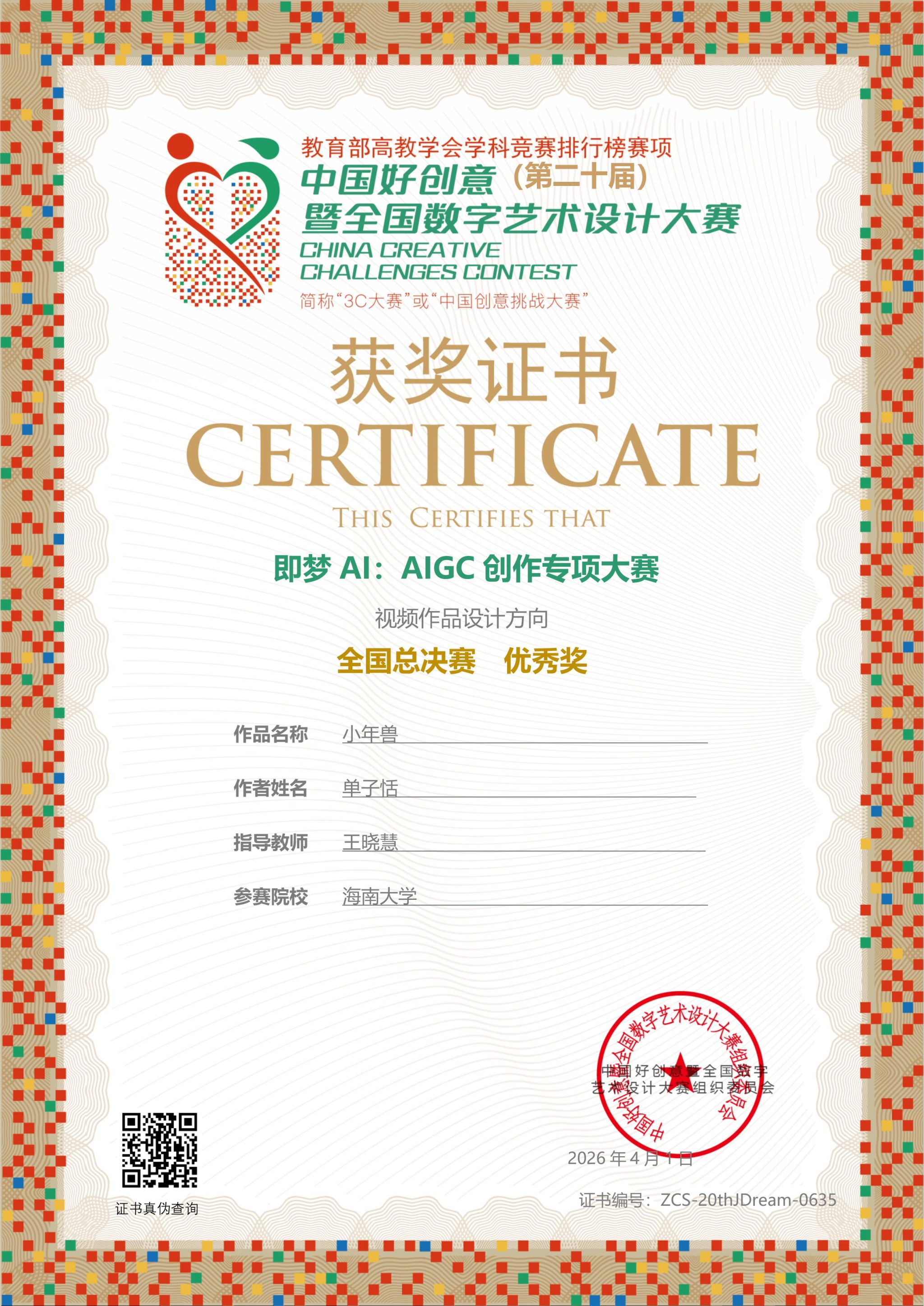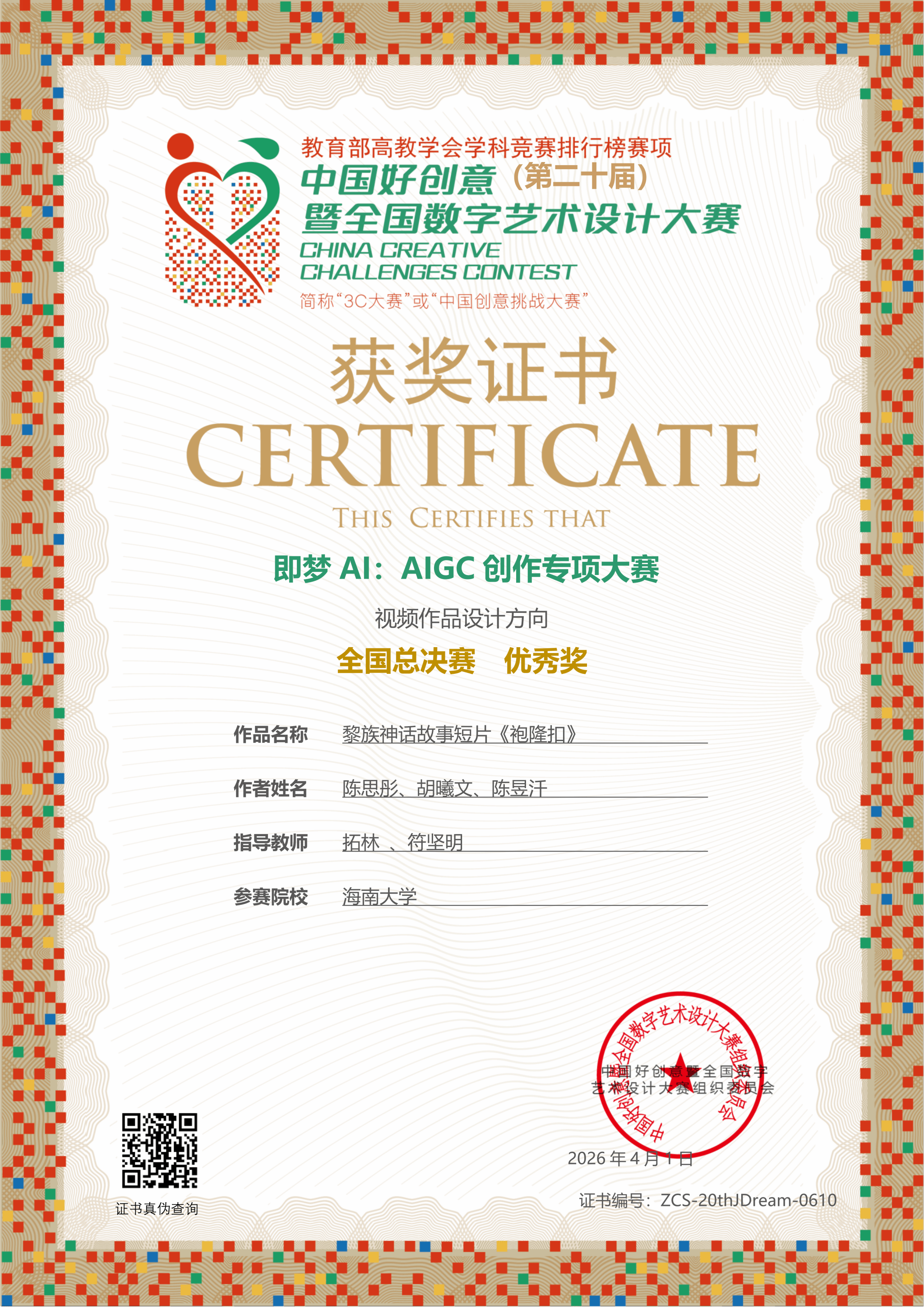 【喜报一】2026年4月1日在中国好创意暨全国数字艺术设计大赛第20届“即梦AI:AIGC创作专项大赛”中,av影片直播