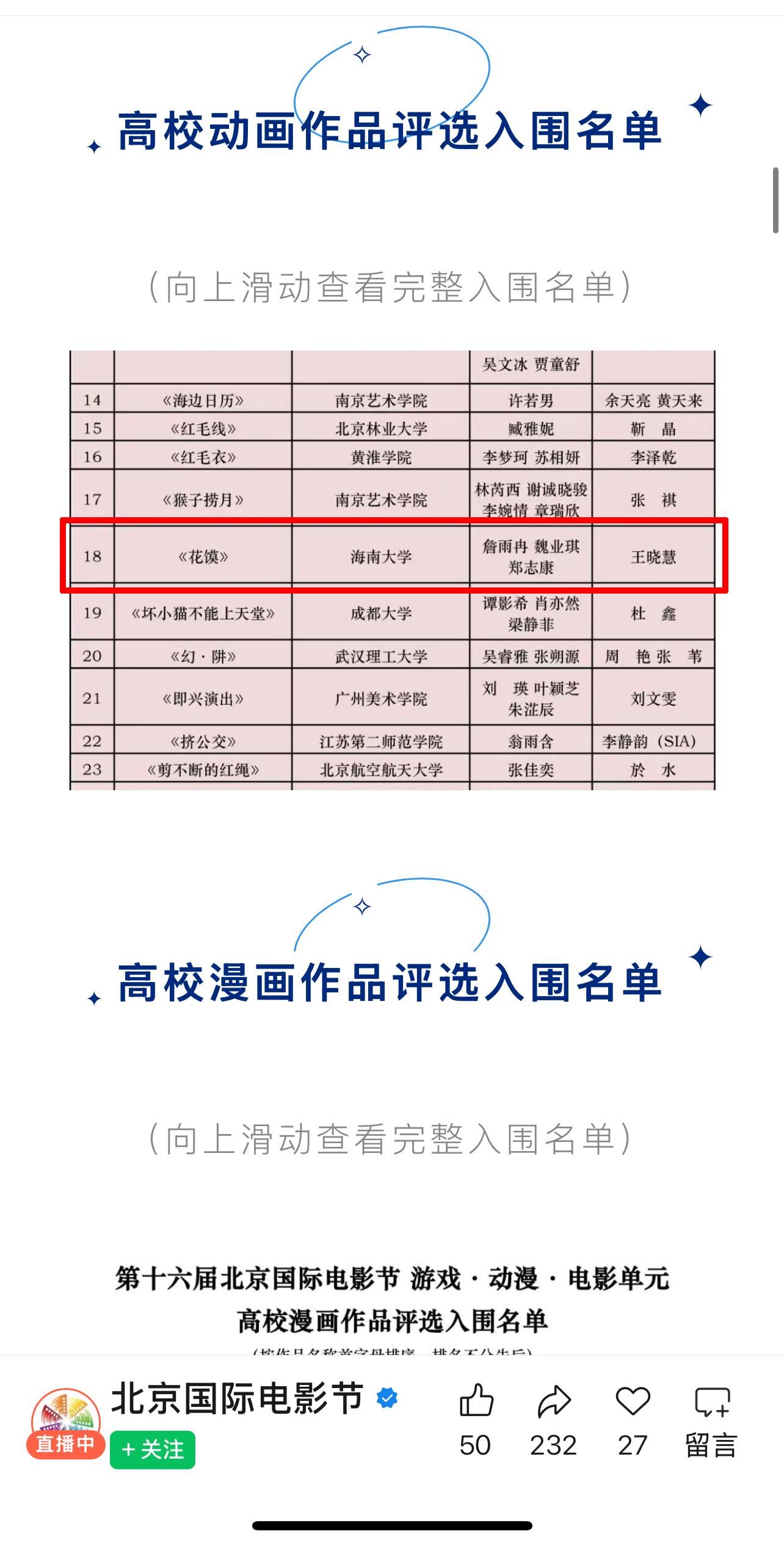 【喜报二】2026年4月14日,第十六届北京国际电影节游戏·动漫·电影单元高校动漫作品评选入围名单揭晓,av影片直播